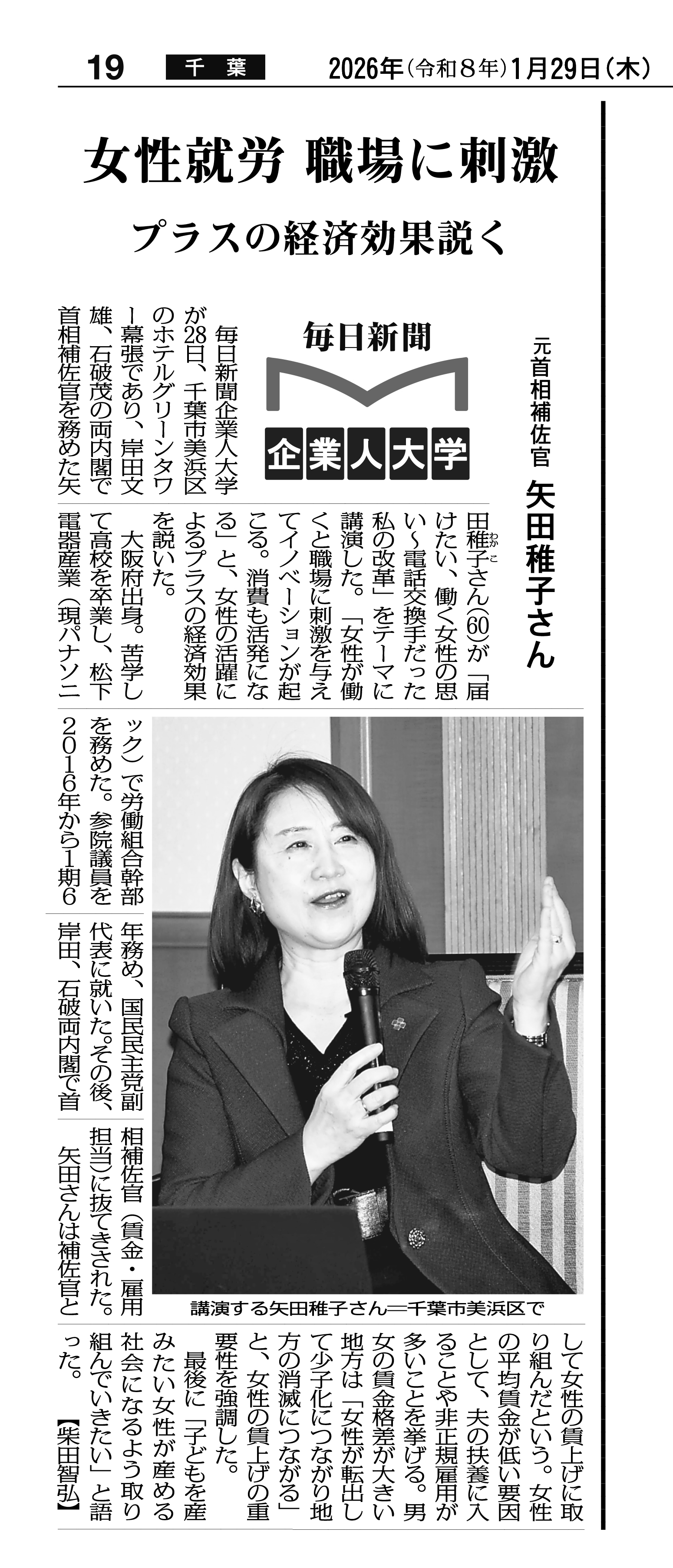 元首相秘書官 矢田 稚子 氏