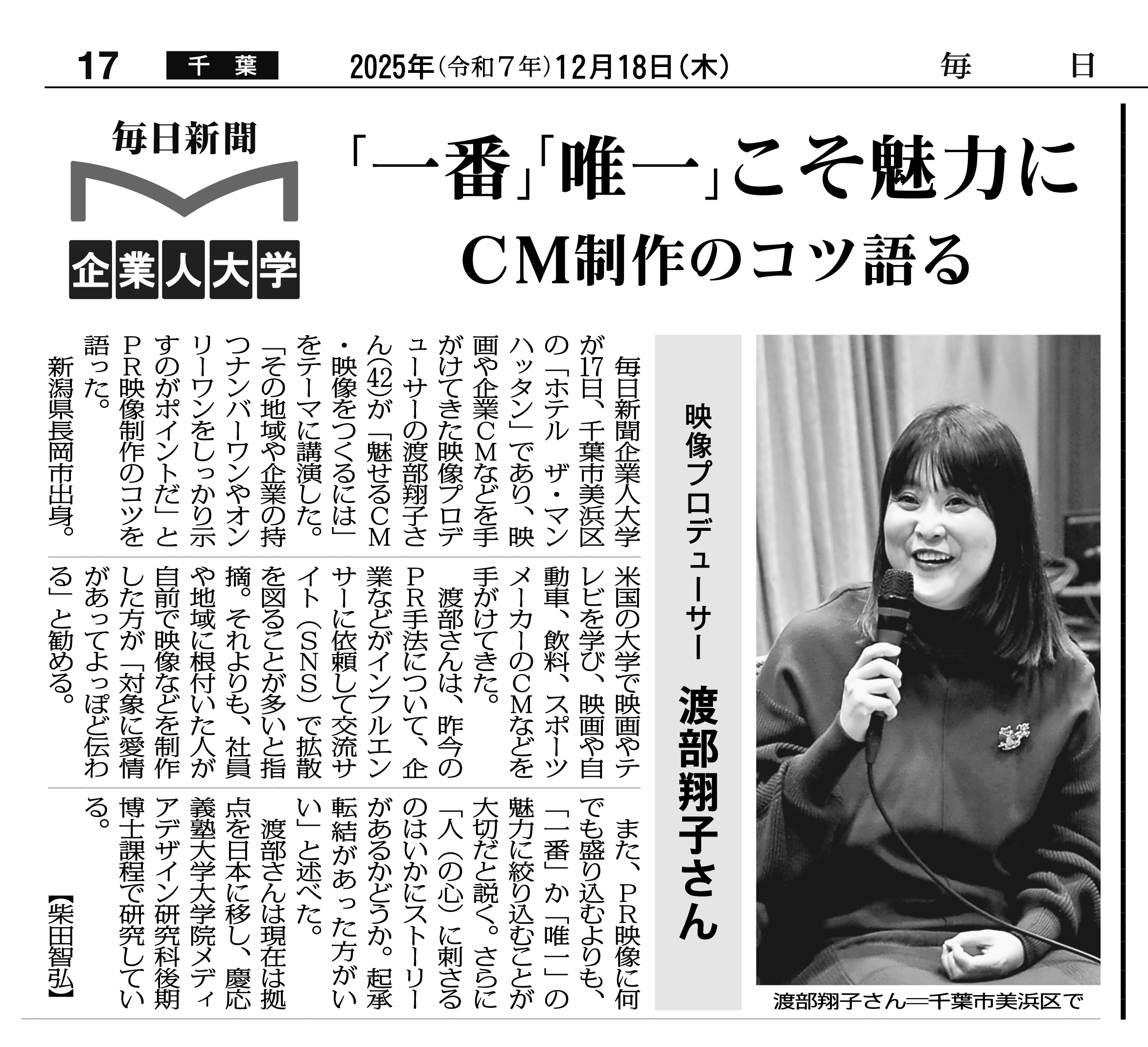 映像プロデューサー 渡部 翔子 氏